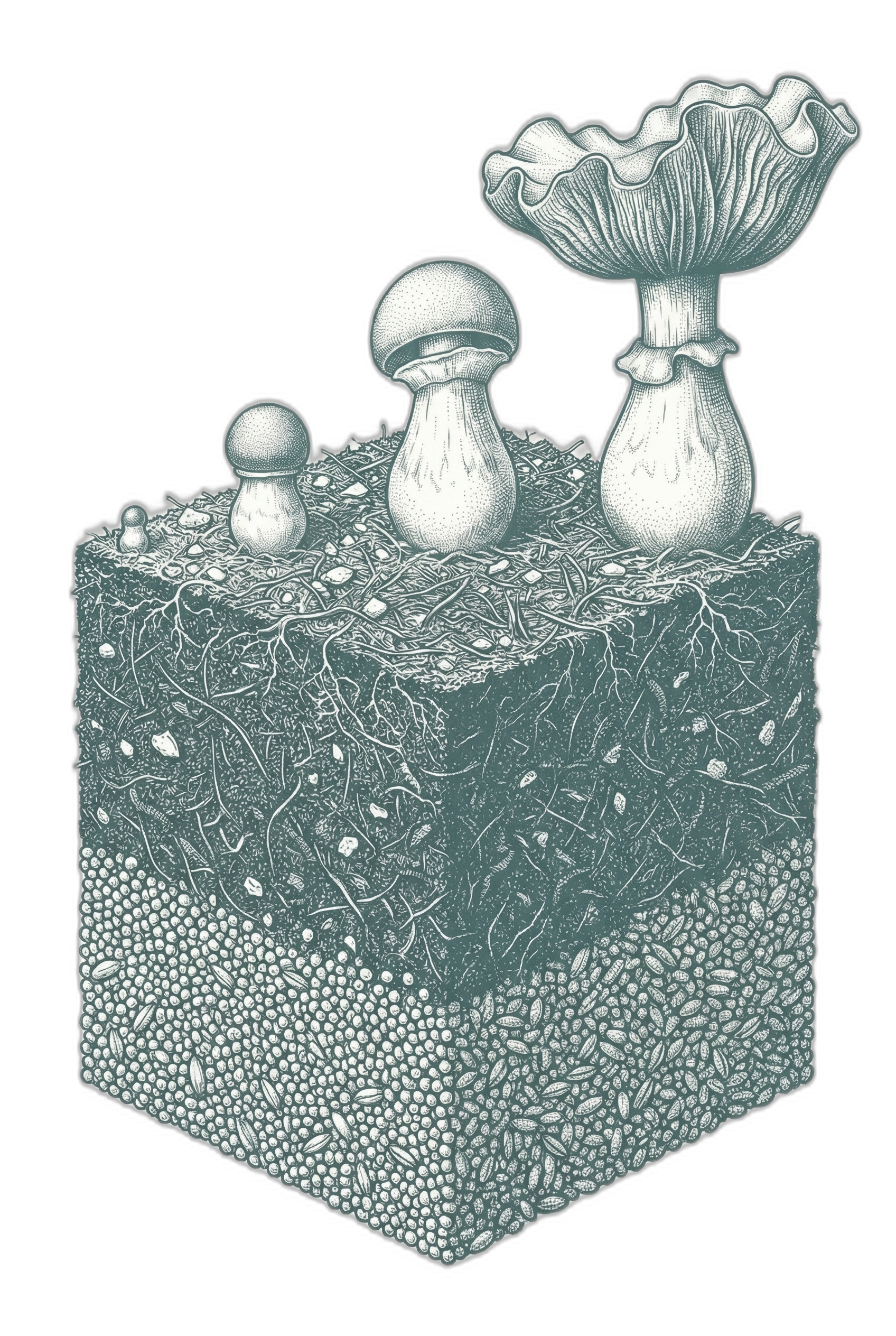 The bulk growing medium where mycelium colonizes and fruits emerge. Our HB4 blend ships hydrated and ready to use.